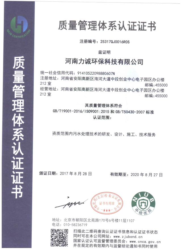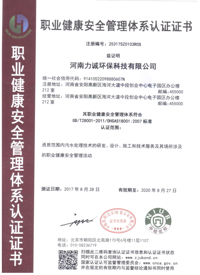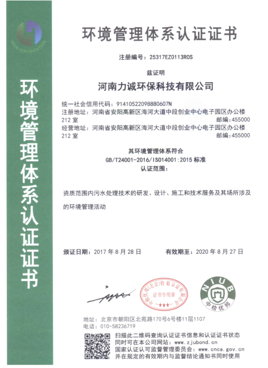 祝賀河南力誠環保科技有限公司獲三標體系認證